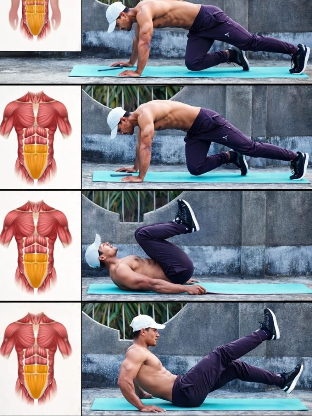 ऊपर दिखाई गई एक्सरसाइज सीरीज को “लोअर एब्स ब्लास्ट वर्कआउट” कहा जा सकता है। ये सभी मूव्स खासतौर पर पेट के निचले हिस्से (लोअर एब्स), कोर मसल्स और ऑब्लिक्स पर असर डालते हैं।