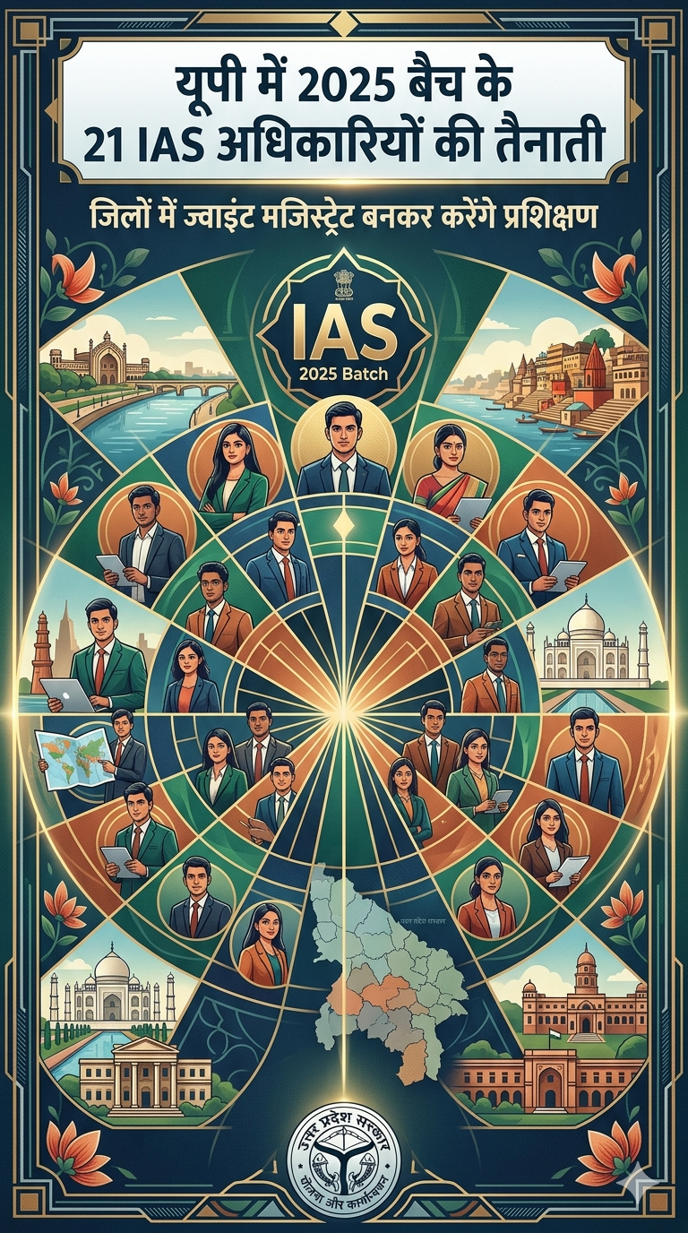 यूपी में 2025 बैच के 21 IAS अधिकारियों की तैनाती, जिलों में ज्वाइंट मजिस्ट्रेट बनकर करेंगे प्रशिक्षण