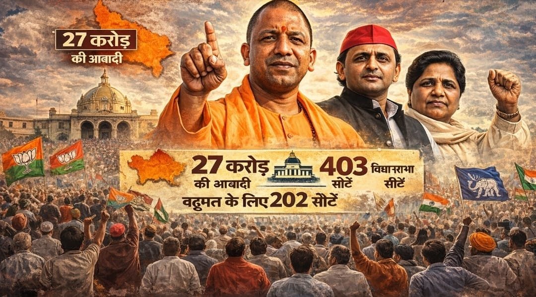 लखनऊ| उत्तर प्रदेश में 2027 की विधानसभा चुनावी लड़ाई अब पूरी तरह आकार ले चुकी है। करीब 27 करोड़ आबादी वाले इस प्रदेश में सत्ता की जंग केवल सरकार बनाने तक सीमित नहीं है, बल्कि यह तय करेगी कि आने वाले वर्षों में देश की राजनीति किस दिशा में जाएगी। प्रदेश में 403 विधानसभा सीटें हैं और सत्ता के लिए 202 सीटों का बहुमत जरूरी है। यूपी में करीब 8.5 से 9 करोड़ मतदाता हैं, जिनका फैसला न सिर्फ लखनऊ की कुर्सी तय करता है, बल्कि दिल्ली की सत्ता की दिशा भी प्रभावित करता है।