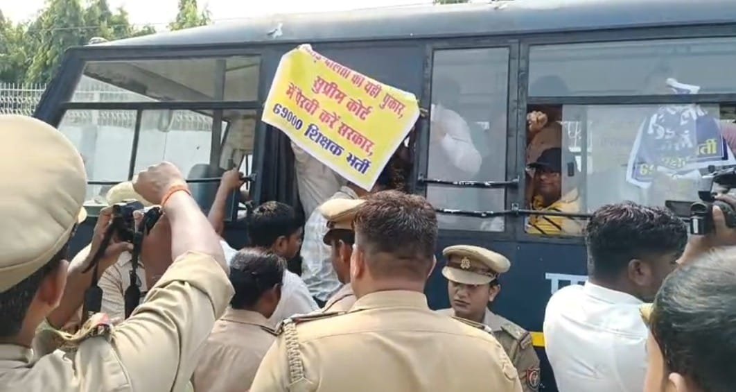 69 हजार शिक्षक भर्ती अभ्यर्थियों का प्रदर्शन, मंत्री संदीप सिंह के आवास का घेराव