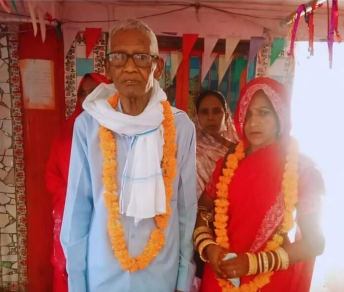 जौनपुर (उत्तर प्रदेश)। कहते हैं, इश्क और शादी में उम्र कोई मायने नहीं रखती—but जौनपुर का एक किस्सा अब पूरे इलाके में हंसी और हैरानी का सबब बन गया है। यहां 75 वर्षीय बुजुर्ग संगरू राम ने पूरे धूमधाम से अपने से आधी उम्र की 35 वर्षीय महिला मनभावती संग सात फेरे लिए। बैंड-बाजा, बारात और ढोल-नगाड़ों के बीच बुजुर्ग दूल्हे ने नई नवेली दुल्हन का हाथ थामा तो पूरा गांव अचंभित था।