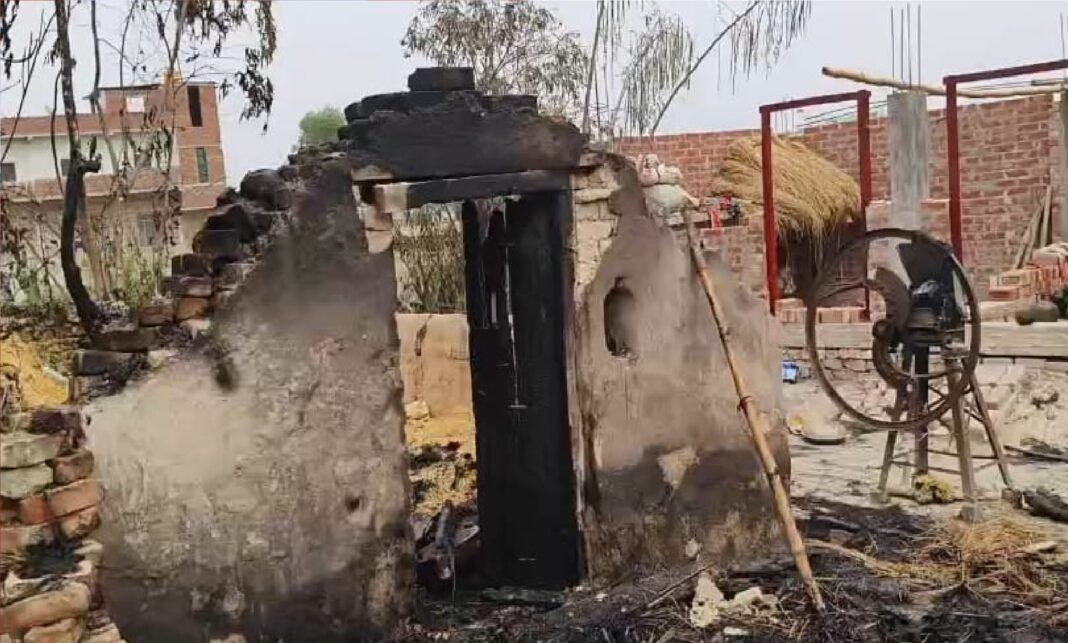सिलेंडर ब्लास्ट से झोपड़ी में भीषण आग, मासूम को ग्रामीणों ने बचाया, तीन झुलसे
