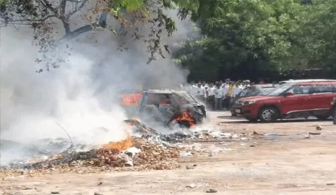 दीवानी परिसर की पार्किंग में भीषण आग, पांच कारें जलीं; कूड़े से उठी चिंगारी पर शक
