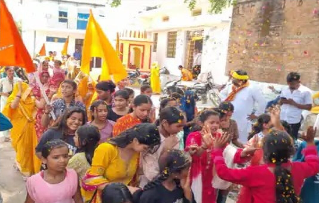 शोभायात्रा गांव के विभिन्न मार्गों से होती हुई हनुमान मंदिर पहुंची, जहां विधि-विधान से पूजा-अर्चना की गई। श्रद्धालुओं ने भगवान हनुमान के दर्शन कर सुख-समृद्धि और शांति की कामना की।