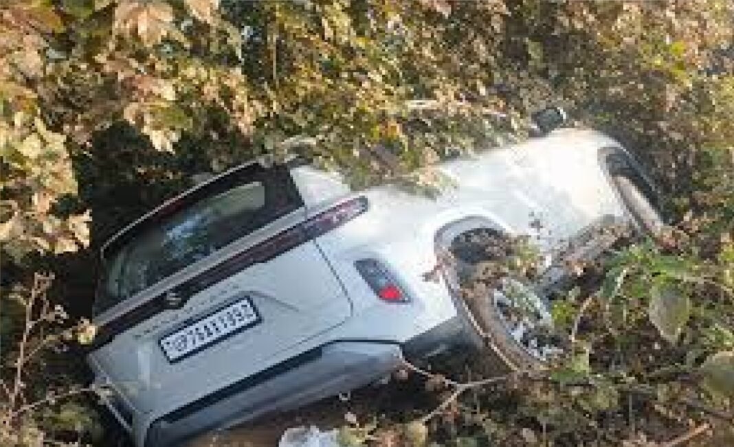 तेज रफ्तार कार नाले में गिरी, बड़ा हादसा टला; चालक बाल-बाल बचा