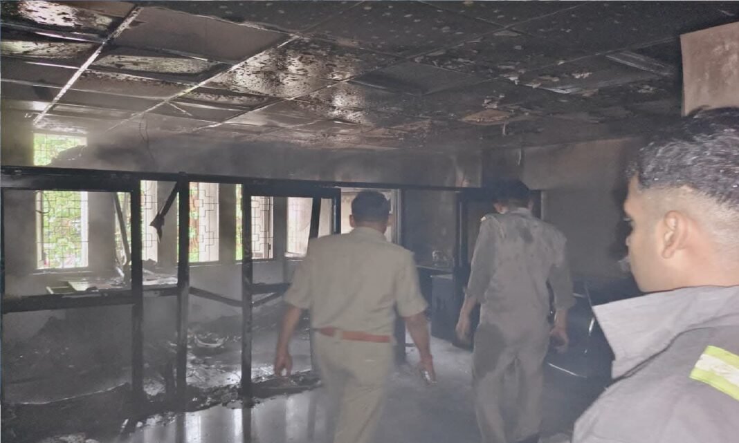 विकास भवन में मनरेगा कार्यालय में अचानक लगी आग, मची भगदड़