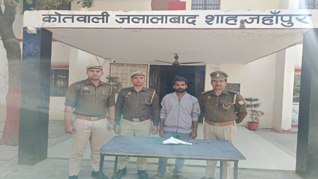 शाहजहांपुर: थाना जलालाबाद पुलिस (Jalalabad police) ने अवैध शस्त्र रखने के आरोप में एक युवक को गिरफ्तार कर उसके कब्जे से तमंचा (illegal pistol) एवं जिंदा कारतूस बरामद किया है। पुलिस ने आरोपी के खिलाफ आयुध अधिनियम के तहत मुकदमा दर्ज कर विधिक कार्रवाई शुरू कर दी है। पुलिस के अनुसार 12 फरवरी 2026 को मुखबिर की सूचना पर जलालाबाद पुलिस टीम ने कार्रवाई करते हुए अमित कौशल उर्फ छोटू (उम्र करीब 27 वर्ष), पुत्र राजेन्द्र प्रसाद कौशल, निवासी सुभाषनगर मोहल्ला कानूनगोयान, कस्बा व थाना जलालाबाद, जनपद शाहजहांपुर को भामाशाह पार्क मोड़ से पहले दाहिनी ओर स्थित एक प्लाट के पास से रात करीब 9 बजे गिरफ्तार किया।