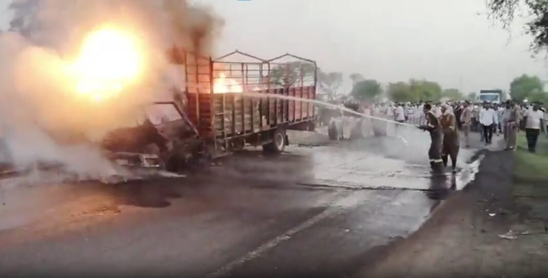 चलती डीसीएम बनी आग का गोला: हाईवे पर मची अफरा-तफरी