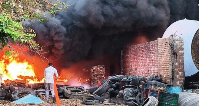 टायर ऑयल फैक्टरी में भीषण आग, बड़ा हादसा टला