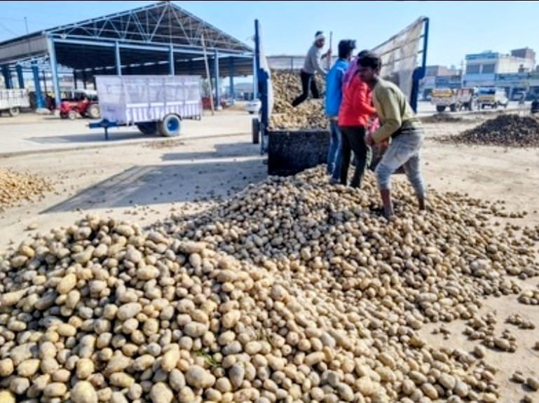 सातनपुर मंडी में आलू के दाम गिरे, किसानों की चिंता बढ़ी