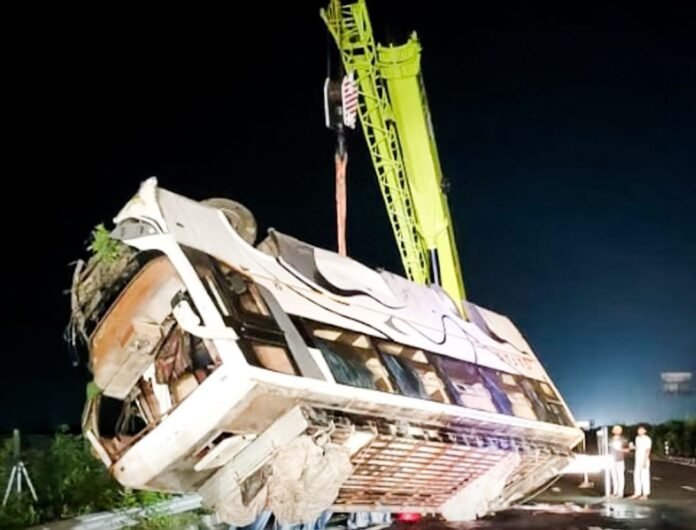 देर रात आगरा-लखनऊ एक्सप्रेसवे पर एक भीषण सड़क हादसा हो गया। दिल्ली से वाराणसी की ओर जा रही एक निजी स्लीपर बस अचानक अनियंत्रित होकर पलट गई, जिससे यात्रियों में चीख-पुकार मच गई। हादसा उन्नाव जिले के मटरिया हसनगंज क्षेत्र में हुआ।