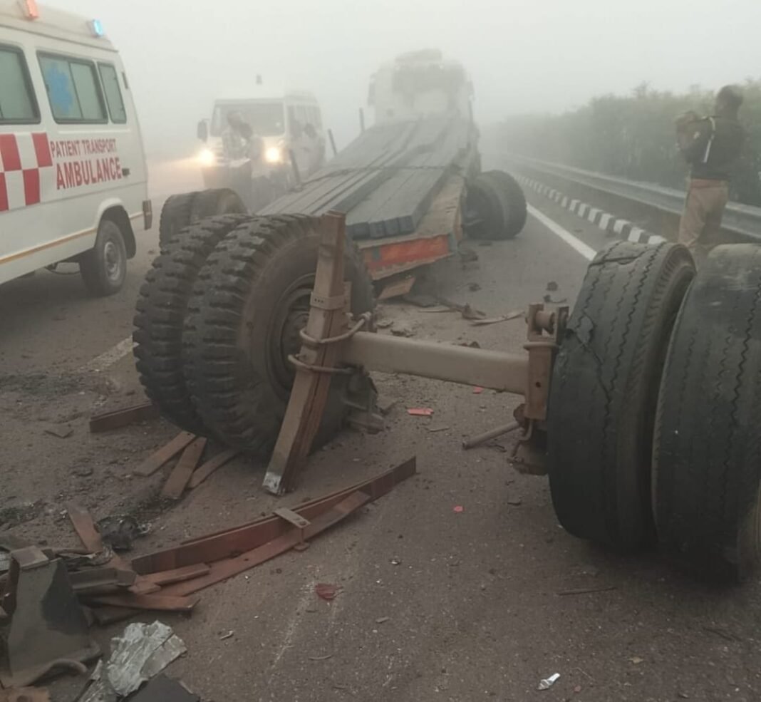 धुंध के कारण ट्रेलर, ट्रॉला, बस और पिकअप टकराए, 10 घायल, चार की हालत नाजुक