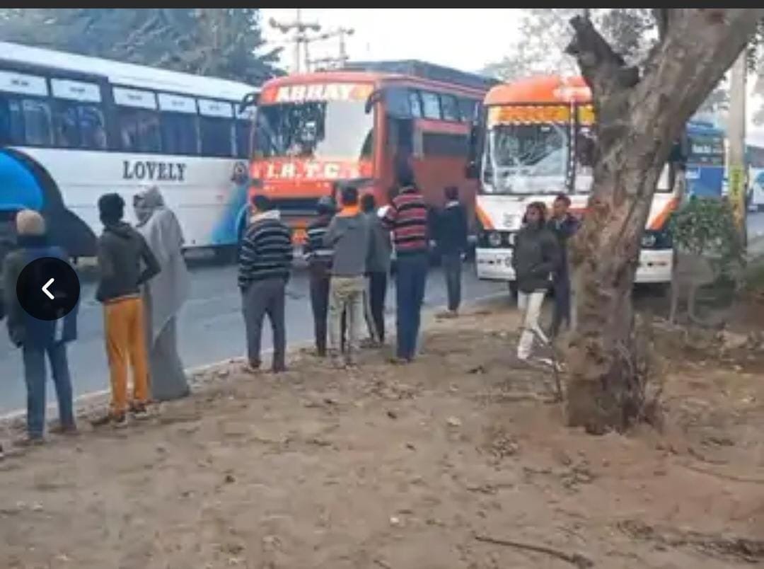 सड़क हादसा: दो बसों की आमने-सामने टक्कर, सड़क पर लगा लंबा जाम