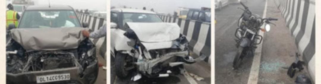 गाजियाबाद के मोदीनगर में भोजपुर थाना क्षेत्र के अंतर्गत दिल्ली-मेरठ एक्सप्रेसवे पर रविवार रात करीब एक बजे कोहरे और धुंध के कारण बस, ट्रक और कार समेत पांच वाहन आपस में टकरा गए। इस हादसे में छह लोग घायल हो गए, जिन्हें उपचार के लिए मेरठ के सुभारती अस्पताल भेजा गया।