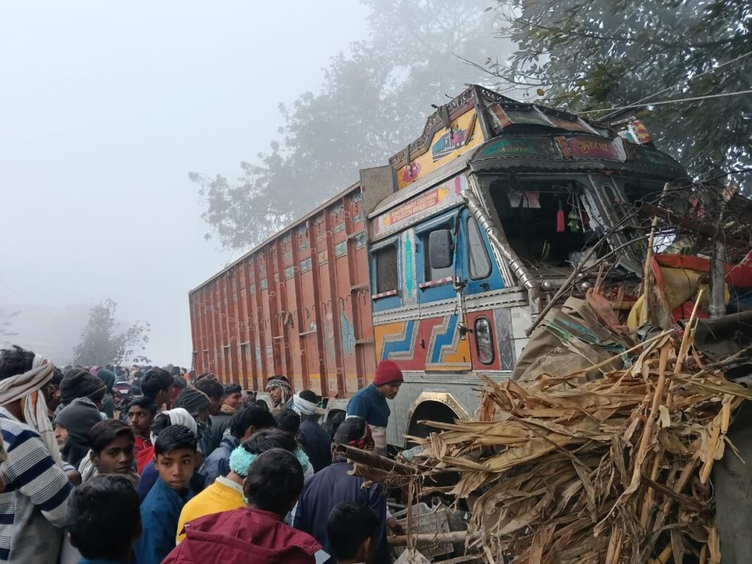 नवाबगंज। शुक्रवार सुबह करीब आठ बजे नवाबगंज थाना क्षेत्र के गांव उम्मरपुर में घने कोहरे के चलते एक तेज रफ्तार ट्रक अनियंत्रित हो गया। बताया जा रहा है कि चालक को झपकी आने से यह हादसा हुआ। अलीगंज की ओर से आ रहे ट्रक ने सबसे पहले गांव निवासी किशनपाल की परचून व अंडे की दुकान में जोरदार टक्कर मार दी, जिससे किशनपाल गंभीर रूप से घायल हो गए।