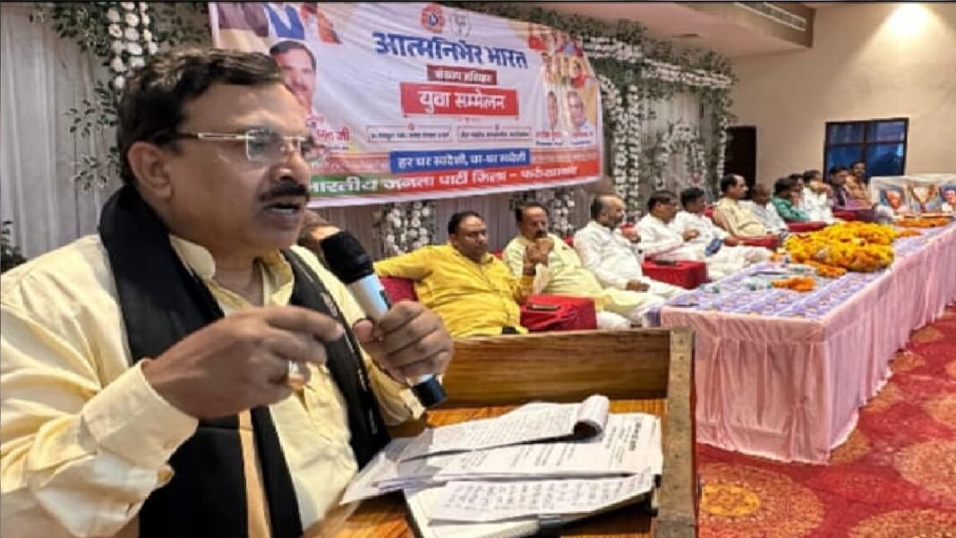 कायमगंज (फर्रुखाबाद): रविवार को आत्मनिर्भर भारत संकल्प अभियान (Atmanirbhar Bharat Sankalp Abhiyan) के अंतर्गत एक भव्य युवा सम्मेलन का आयोजन कायमगंज स्थित रोज गार्डन में किया गया। कार्यक्रम के मुख्य अतिथि कानपुर बुंदेलखंड क्षेत्र के अध्यक्ष प्रकाश पाल ने युवाओं (Youth) को संबोधित करते हुए स्वदेशी अपनाओ पर जोर दिया। कार्यक्रम की अध्यक्षता युवा मोर्चा जिला अध्यक्ष मयंक सिंह बुंदेला ने की, जबकि संचालन अमन अवस्थी द्वारा किया गया।