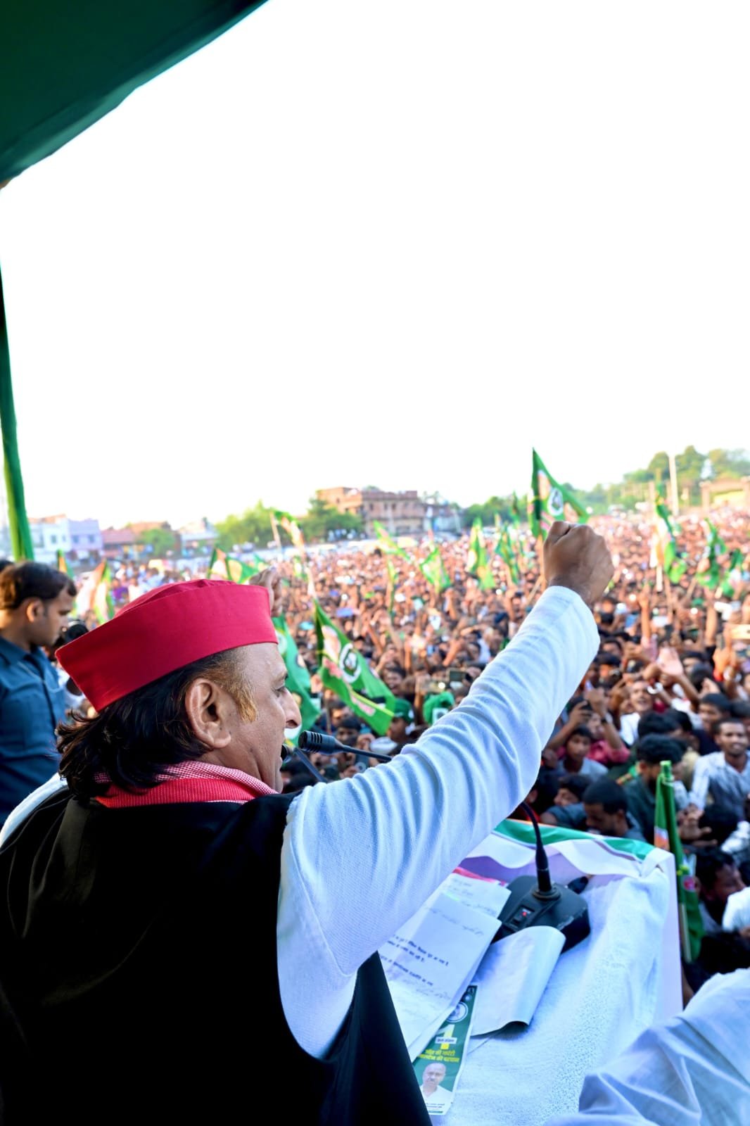 उन्होंने आगे कहा कि “बीजेपी ने फौज की नौकरी तक रोक दी, चार साल की अधूरी नौकरी देकर युवाओं का भविष्य छीन लिया। अगर पक्की वर्दी चाहिए, तो बीजेपी के खिलाफ वोट डालो। हम सरकार में आए तो अग्निवीर व्यवस्था हमेशा के लिए खत्म कर देंगे।” प्रधानमंत्री मोदी पर तंज कसते हुए अखिलेश यादव बोले, “एक विश्वगुरु हैं जो आजकल बिहार में गुरुजी बनकर घूम रहे हैं। बताओ, आज डॉलर कहां पहुंच गया?”