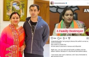सुबह प्रतीक ने लिखा, “इस स्वार्थी औरत ने मेरे परिवार को बर्बाद कर दिया है। इसने मेरी मानसिक स्थिति को भी नुकसान पहुंचाया है।” अपर्णा पर निशाना साधते हुए प्रतीक ने अपने आधिकारिक इंस्टाग्राम अकाउंट (iamprateekyadav) पर लिखा कि उनकी पत्नी ने उनके परिवार के साथ उनके रिश्ते में तनाव पैदा कर दिया है। शादी के बाद से पारिवारिक रिश्तों में तनाव लगातार बढ़ता गया है। इसका असर उनके निजी और सामाजिक जीवन पर पड़ा है।