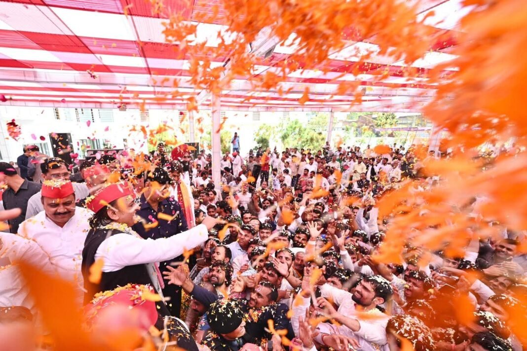 सैफई में अखिलेश यादव ने कार्यकर्ताओं संग खेली फूलों की होली