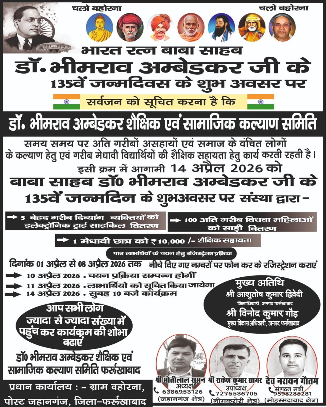 समिति के पदाधिकारियों का कहना है कि बाबा साहब के विचारों को आगे बढ़ाते हुए समाज के अंतिम पंक्ति के व्यक्ति तक मदद पहुंचाना ही इस आयोजन का मुख्य उद्देश्य है, ताकि सामाजिक समरसता और शिक्षा को बढ़ावा मिल सके।