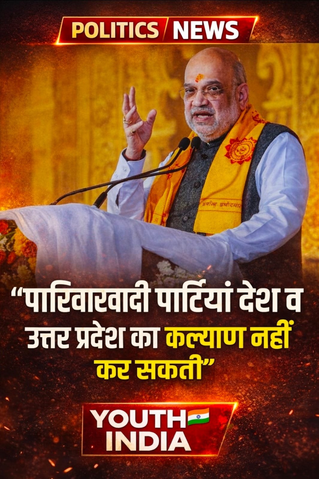 एक जनसभा/कार्यक्रम को संबोधित करते हुए अमित शाह ने कहा कि उत्तर प्रदेश ने लंबे समय तक परिवारवादी शासन का दंश झेला है, जहां सत्ता का इस्तेमाल जनता की सेवा के बजाय अपने रिश्तेदारों और करीबियों को आगे बढ़ाने के लिए किया गया। उन्होंने कहा कि इसका परिणाम यह हुआ कि प्रदेश विकास, कानून-व्यवस्था और रोजगार के मामलों में पिछड़ता चला गया।