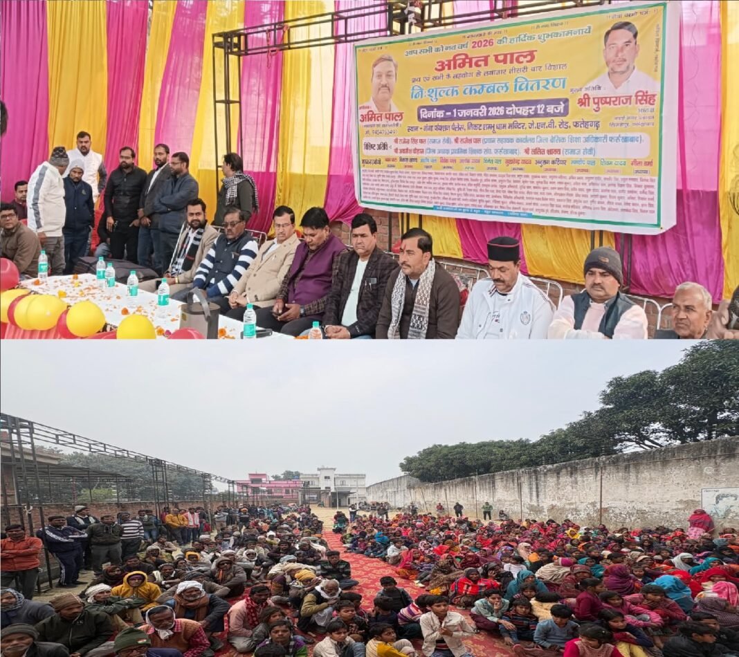 फर्रुखाबाद: शीतलहर के बीच फर्रुखाबाद (Farrukhabad) में समाजसेवा की एक प्रेरक पहल देखने को मिली। अध्यापक एवं समाजसेवी अमित पाल के संयोजन में जयनारायण वर्मा रोड स्थित गंगा फंक्शन पैलेस में कंबल वितरण कार्यक्रम आयोजित किया गया। कार्यक्रम के दौरान लगभग 600 गरीब व असहाय लोगों को कंबल वितरित (blankets distributed) किए गए, जिससे ठंड में उन्हें बड़ी राहत मिली।