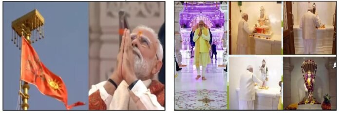 ध्वजारोहण के बाद प्रधानमंत्री मोदी ने भावुक स्वर में कहा “आज संपूर्ण भारत, संपूर्ण विश्व राममय है। सदियों की पीड़ा आज समाप्त हो रही है।”