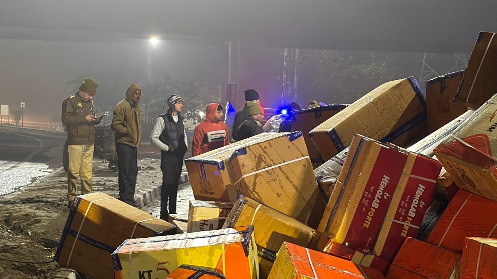 रामपुर। दिल्ली–लखनऊ राष्ट्रीय राजमार्ग पर एक बड़ा हादसा हो गया। दवाइयों से लदा एक कैंटर अनियंत्रित होकर पलट गया, जिससे उसके नीचे दबकर चार बैलों की मौके पर ही मौत हो गई। हादसे के बाद हाईवे पर अफरा-तफरी मच गई और कुछ समय के लिए यातायात भी प्रभावित रहा।