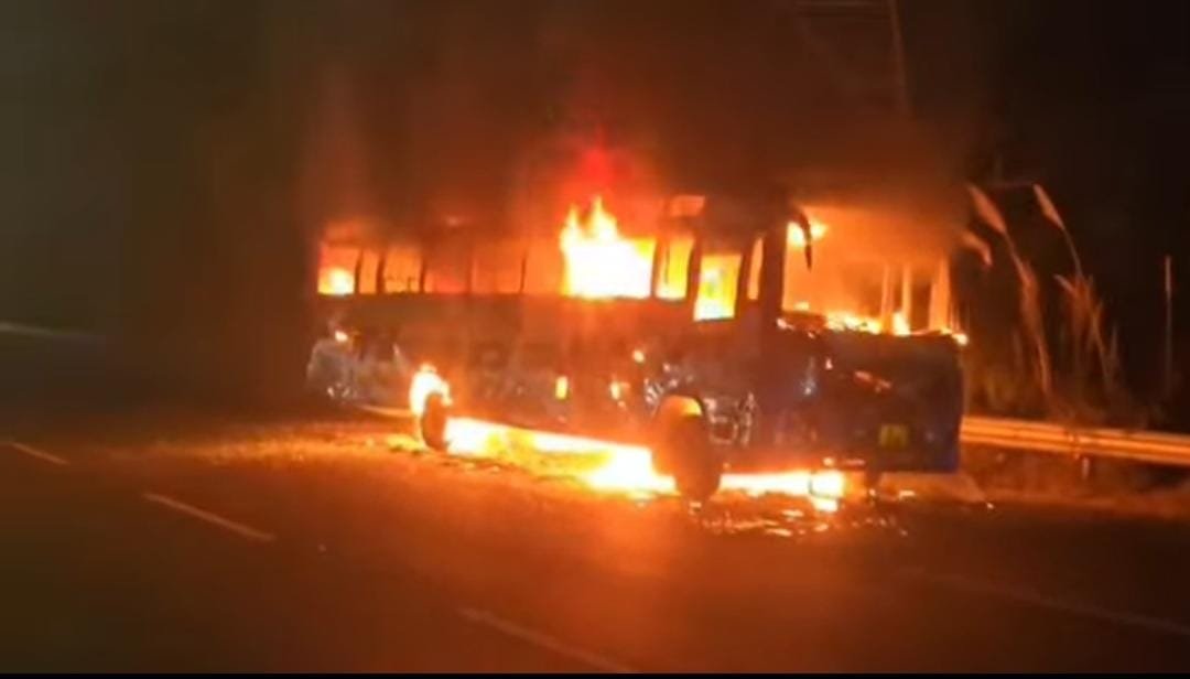 बुलंदशहर|   जिले में शनिवार देर रात दिल्ली से हरदोई जा रही एक प्राइवेट बस में अचानक आग लग गई। हादसे के वक्त बस में करीब 70 यात्री सवार थे। घटना बुलंदशहर के डिबाई क्षेत्र के पास हुई, जब बस हाईवे पर तेज रफ्तार से जा रही थी। अचानक इंजन के पास से धुआं उठने लगा और देखते ही देखते आग की लपटें फैल गईं। ड्राइवर ने सूझबूझ दिखाते हुए बस को तुरंत सड़क के किनारे रोक दिया और सभी यात्रियों को नीचे उतार दिया। कुछ ही पलों में पूरी बस आग की चपेट में आ गई। स्थानीय लोगों ने तुरंत पुलिस और फायर ब्रिगेड को सूचना दी। मौके पर पहुंची दमकल टीम ने कड़ी मशक्कत के बाद आग पर काबू पाया। सौभाग्य से किसी यात्री को कोई चोट नहीं आई, लेकिन बस पूरी तरह जलकर खाक हो गई। यात्रियों को बाद में दूसरी बस से हरदोई रवाना किया गया। पुलिस ने प्रारंभिक जांच में शॉर्ट सर्किट को आग लगने का कारण बताया है। यात्रियों ने ड्राइवर की तत्परता की सराहना की, जिसकी वजह से बड़ा हादसा टल गया।