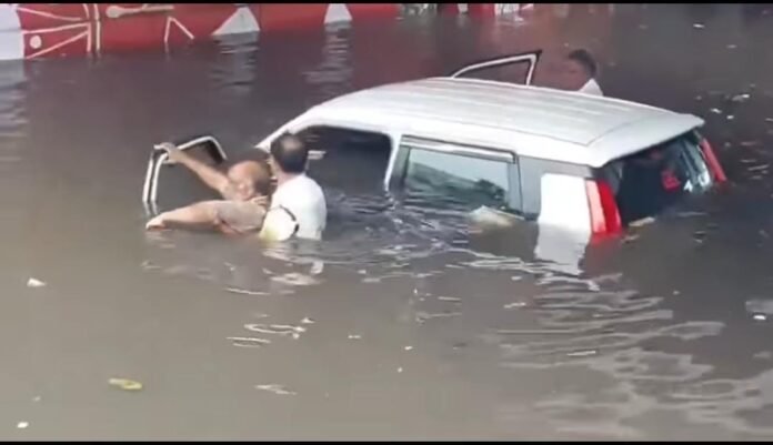 मथुरा। मथुरा की सड़कों पर फिर से भारी बारिश का कहर देखने को मिला, लेकिन इसी बीच एक पुलिसकर्मी ने अपनी बहादुरी से सबका दिल जीत लिया। शहर के एक पुल के नीचे पानी इतना बढ़ गया कि एक कार पूरी तरह डूबने लगी। कार में बैठे एक बुजुर्ग की जान पर बन आई थी।