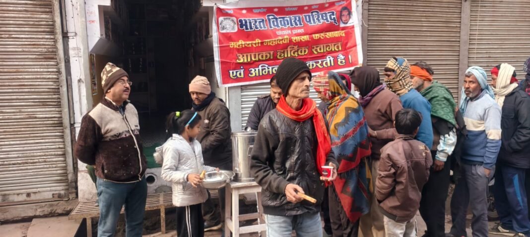 फर्रुखाबाद। कड़ाके की ठंड और शीतलहर के बीच जरूरतमंदों की मदद को आगे आते हुए भारत विकास परिषद महीयसी शाखा ने सेवा प्रकल्प के तहत सराहनीय पहल की। परिषद की ओर से सर्द मौसम में राहगीरों, श्रमिकों और चौक-चौराहों पर कार्यरत लोगों को गर्म चाय और बिस्कुट वितरित किए गए, जिससे ठंड से जूझ रहे लोगों को बड़ी राहत मिली।