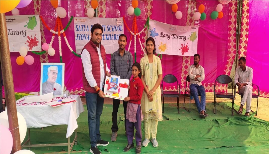नवाबगंज: नवाबगंज में भारती एयरटेल फाउंडेशन (Bharti Airtel Foundation) द्वारा संचालित सत्य भारती स्कूल, ज्योना में बाल दिवस (Children’s Day) धूमधाम से मनाया गया। इस अवसर पर बच्चों ने विभिन्न सांस्कृतिक कार्यक्रम प्रस्तुत किए। कार्यक्रम में अंग्रेजी क्विज प्रतियोगिता और रंग तरंग का भी आयोजन किया गया। बच्चों ने पारंपरिक और सांस्कृतिक परिधान पहनकर कार्यक्रम को सफल बनाया। इस दौरान आनंद कुमार यादव द्वारा बच्चों को पुरस्कृत किया गया।
