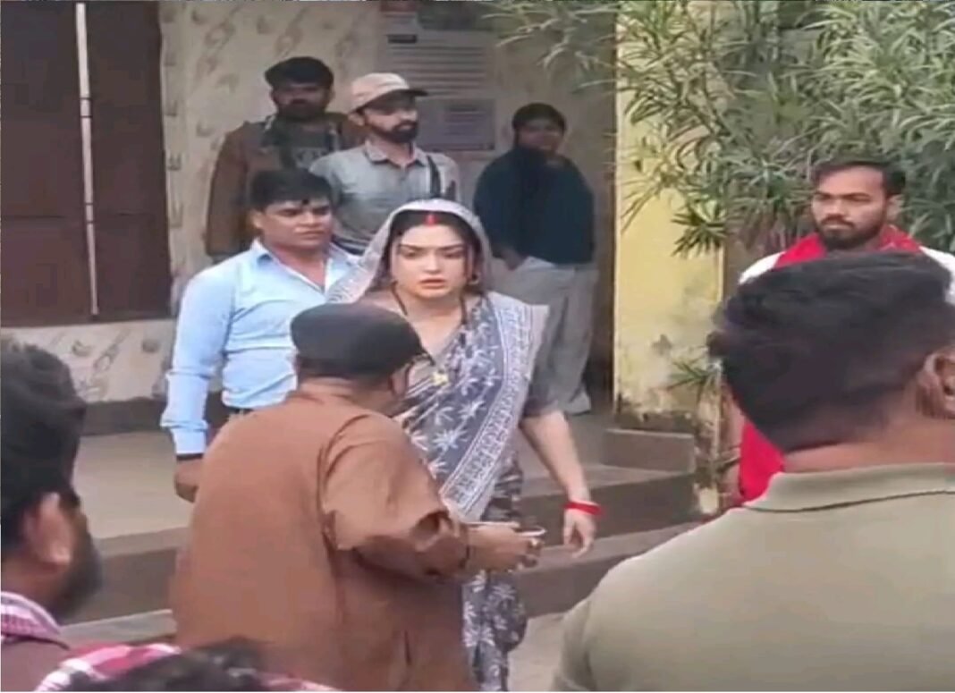 भोजपुरी स्टार आम्रपाली दुबे ने शुरू की फिल्म ‘सरपंची’ की शूटिंग, गांव में उमड़ी भीड़