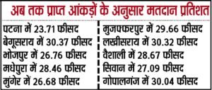 बेगूसराय और लखीसराय में सबसे अधिक वोटिंग | मतदान केंद्रों पर लंबी कतारें | युवाओं और महिलाओं में दिखा जोश