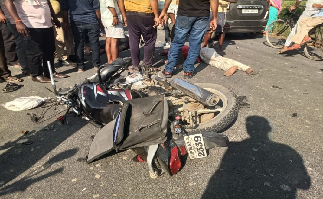 अज्ञात वाहन की टक्कर से बाइक सवार पिता-पुत्र की मौत