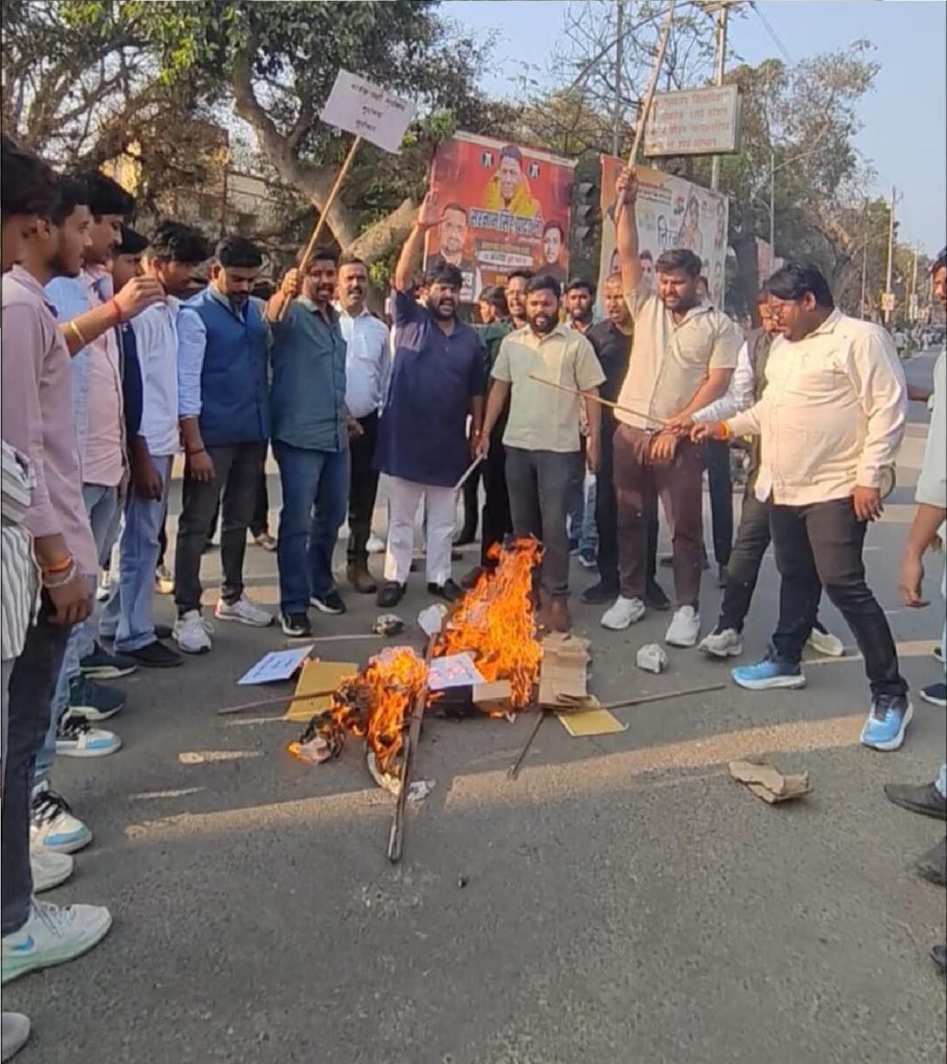 एआई समिट में हंगामे के विरोध में भाजयुमो का प्रदर्शन, राहुल गांधी का पुतला दहन