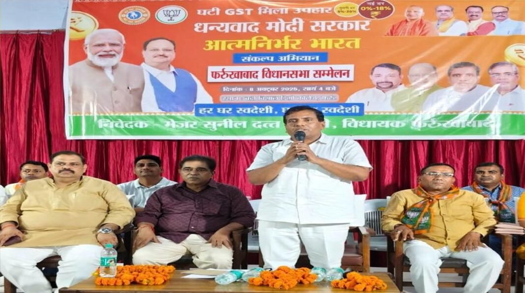 फर्रुखाबाद: भारतीय जनता पार्टी (BJP) द्वारा सदर विधानसभा क्षेत्र का आत्मनिर्भर भारत सम्मेलन आयोजित हुआ। मुख्य अतिथि कानपुर बुंदेलखंड क्षेत्र के उपाध्यक्ष आनंद सिंह ने केंद्र सरकार के द्वारा जीएसटी के दरों में किए गए बदलाव को लेकर व्यापारियों को अवगत कराया एवं आत्मनिर्भर भारत संकल्प अभियान के अंतर्गत स्वदेशी अपनाओ का संकल्प दिलाया गया।