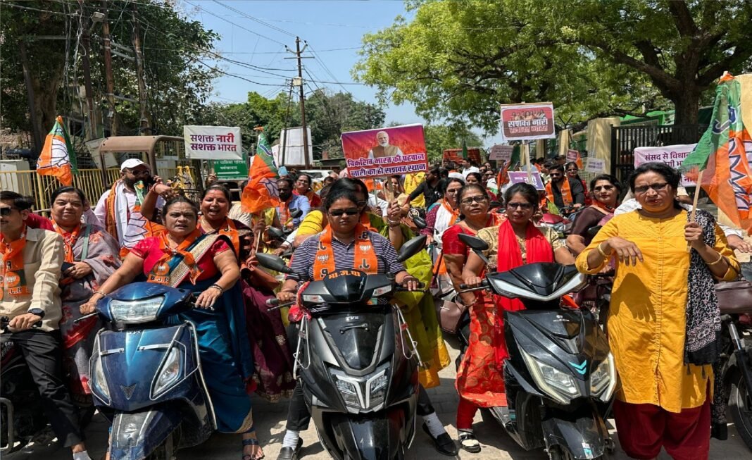 नारी शक्ति वंदनन अधिनियम के उपलक्ष में भाजपा की बाइक रैली, नारों से गूंजा शहर