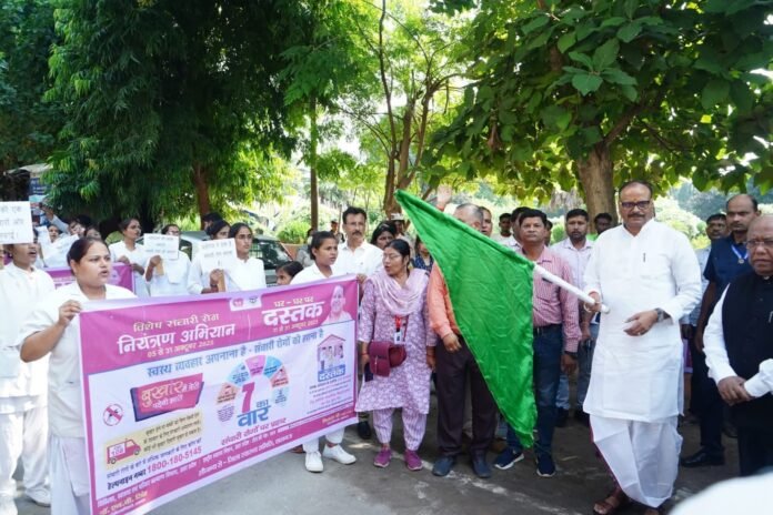 लखनऊ। उत्तर प्रदेश के उप मुख्यमंत्री और स्वास्थ्य विभाग के प्रभारी ब्रजेश पाठक ने रबिवार अर्बन सीएचसी अलीगंज, लखनऊ में 2025 के लिए “विशेष संचारी रोग नियंत्रण अभियान” (5 अक्टूबर से 31 अक्टूबर) और “घर-घर पर दस्तक अभियान” (11 अक्टूबर से 31 अक्टूबर) का औपचारिक शुभारंभ किया। इस अवसर पर उन्होंने संचारी रोगों से बचाव और उपचार के लिए जागरूकता रैली का भी आयोजन किया। अभियान का मुख्य उद्देश्य प्रदेशवासियों में स्वस्थ व्यवहार अपनाने की आदत डालना और संचारी रोगों को पूरी तरह से समाप्त करना है।