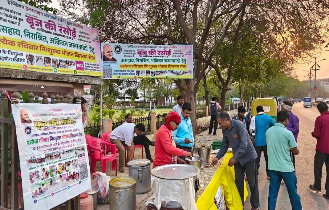 लखनऊ। आशियाना: प्रेरणाश्रोत बाबा नीम करौली जी कृपा से इण्डियन हेल्पलाइन सोसाइटी के सेवा प्रकल्प बृज की रसोई द्वारा रविवार, 15 मार्च 2026 को आशियाना क्षेत्र में अकिंचन, असहाय, निराश्रित एवं जरूरतमंद लोगों के लिए निःशुल्क भोजन वितरण सेवा का आयोजन सफलतापूर्वक संपन्न हुआ।
