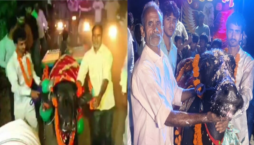 जानकारी के मुताबिक, बछरायूं थाना क्षेत्र के सुनगढ़ गांव निवासी इसरार ने गुरुवार रात को अपने भैंसे ‘शेरा’ का दूसरा जन्मदिन धूमधाम से मनाया। इस मौके पर इसरार ने दावत आयोजित की। शेरा को रंगीन कपड़ों, फूलों की मालाओं और झालरों से सजाया गया था। इसरार ने बताया कि शेरा उनके लिए केवल एक जानवर नहीं, बल्कि परिवार का सदस्य है। लोगों ने कहा कि उन्होंने पहली बार किसी भैंसे का इतना भव्य जन्मदिन समारोह देखा है।