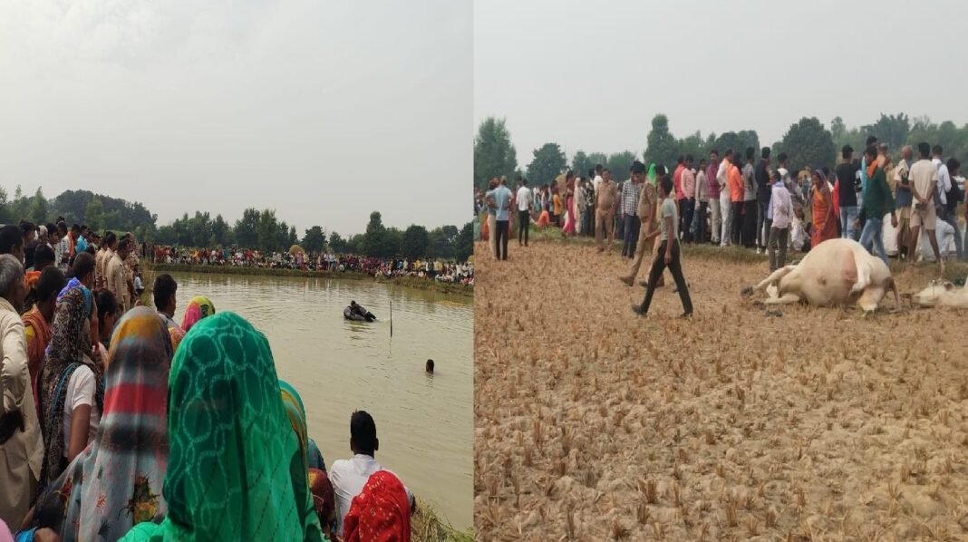 घर लौटते समय, उनके घर से लगभग 200 मीटर दूर एक तालाब के पास एक संकरी सड़क पर बैलगाड़ी का संतुलन बिगड़ गया। बैलगाड़ी पलट गई, जिससे दोनों व्यक्ति और मवेशी गहरे पानी में गिर गए। मदद की आवाज सुनकर स्थानीय लोग मौके पर पहुंचे और तुरंत पुलिस को सूचना दी। थाना प्रभारी सतेंद्र वर्मा पुलिस टीम के साथ घटनास्थल पर पहुँचे और बचाव अभियान में मदद के लिए स्थानीय गोताखोरों को बुलाया। दो घंटे की कड़ी मशक्कत के बाद, गोताखोर सुबह करीब नौ बजे सहज राम का शव बरामद करने में सफल रहे।