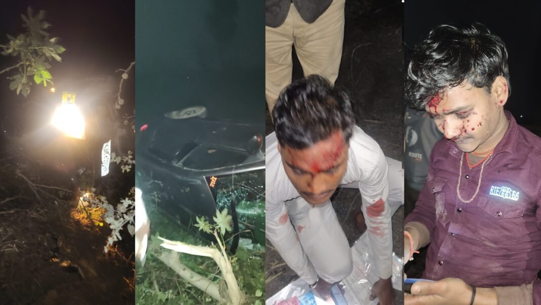 डबरी तिराहा के पास कार खाई में गिरी, दो युवक गंभीर घायल