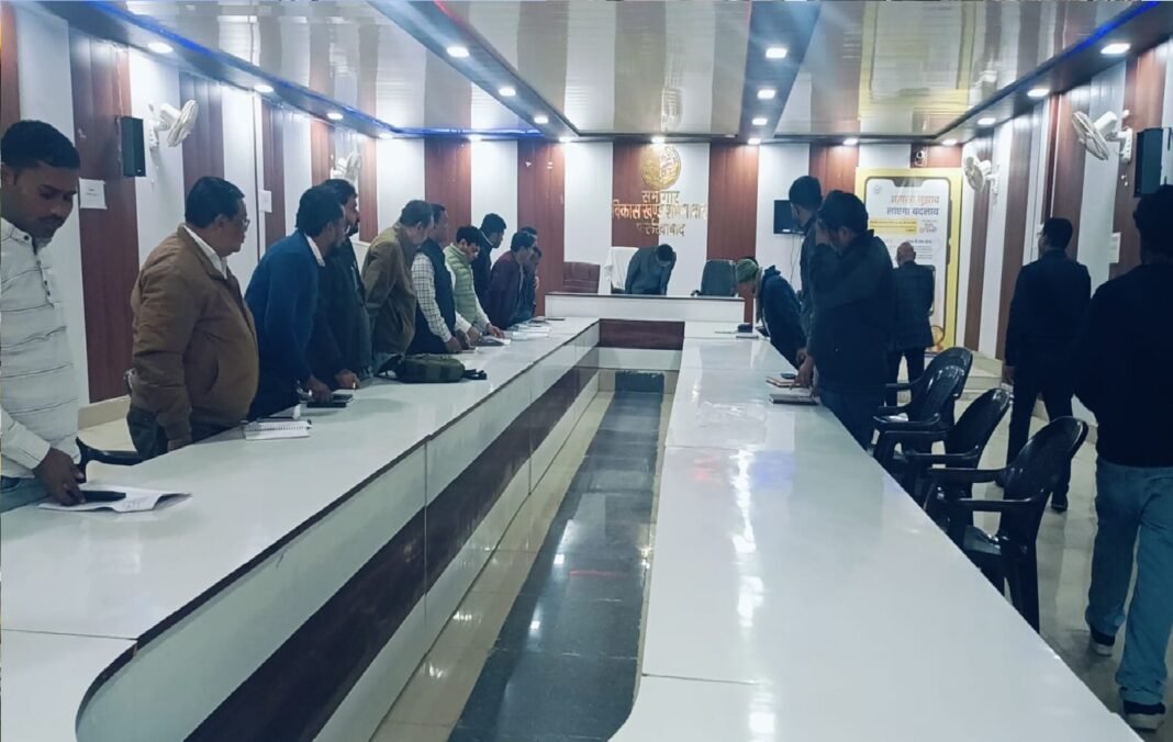 निरीक्षण के उपरांत सभागार में खंड विकास अधिकारी राधेश्याम एवं ब्लॉक प्रमुख प्रतिनिधि राम किशोर राजपूत की उपस्थिति में पंचायत अधिकारियों की बैठक आयोजित की गई। बैठक में विकास कार्यों में तेजी लाने, अपूर्ण योजनाओं को शीघ्र पूरा करने तथा विशेष रूप से एसआईआर कार्य को सक्रियता के साथ संपन्न कराने के निर्देश दिए गए।