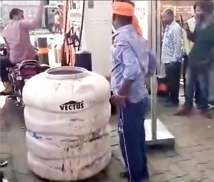 बस्ती में अजब कारनामा: छत वाली टंकी लेकर पेट्रोल पंप पहुंचा युवक