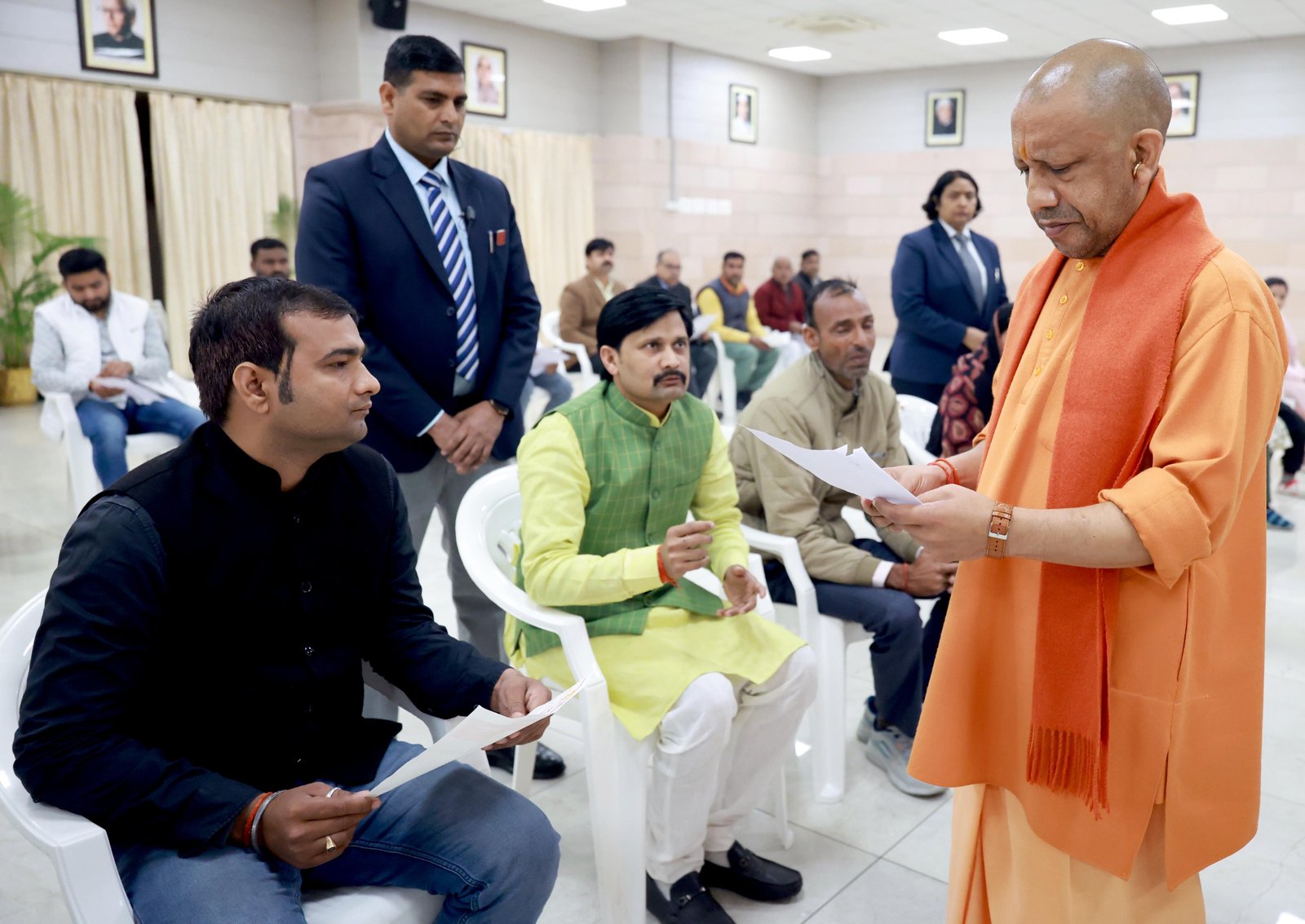 उत्तर प्रदेश के मुख्यमंत्री योगी आदित्यनाथ ने सोमवार को अपने सरकारी आवास 5-कालिदास मार्ग, लखनऊ में आयोजित जनता दर्शन कार्यक्रम में प्रदेश के विभिन्न जिलों से आए नागरिकों की समस्याएं गंभीरता से सुनीं।