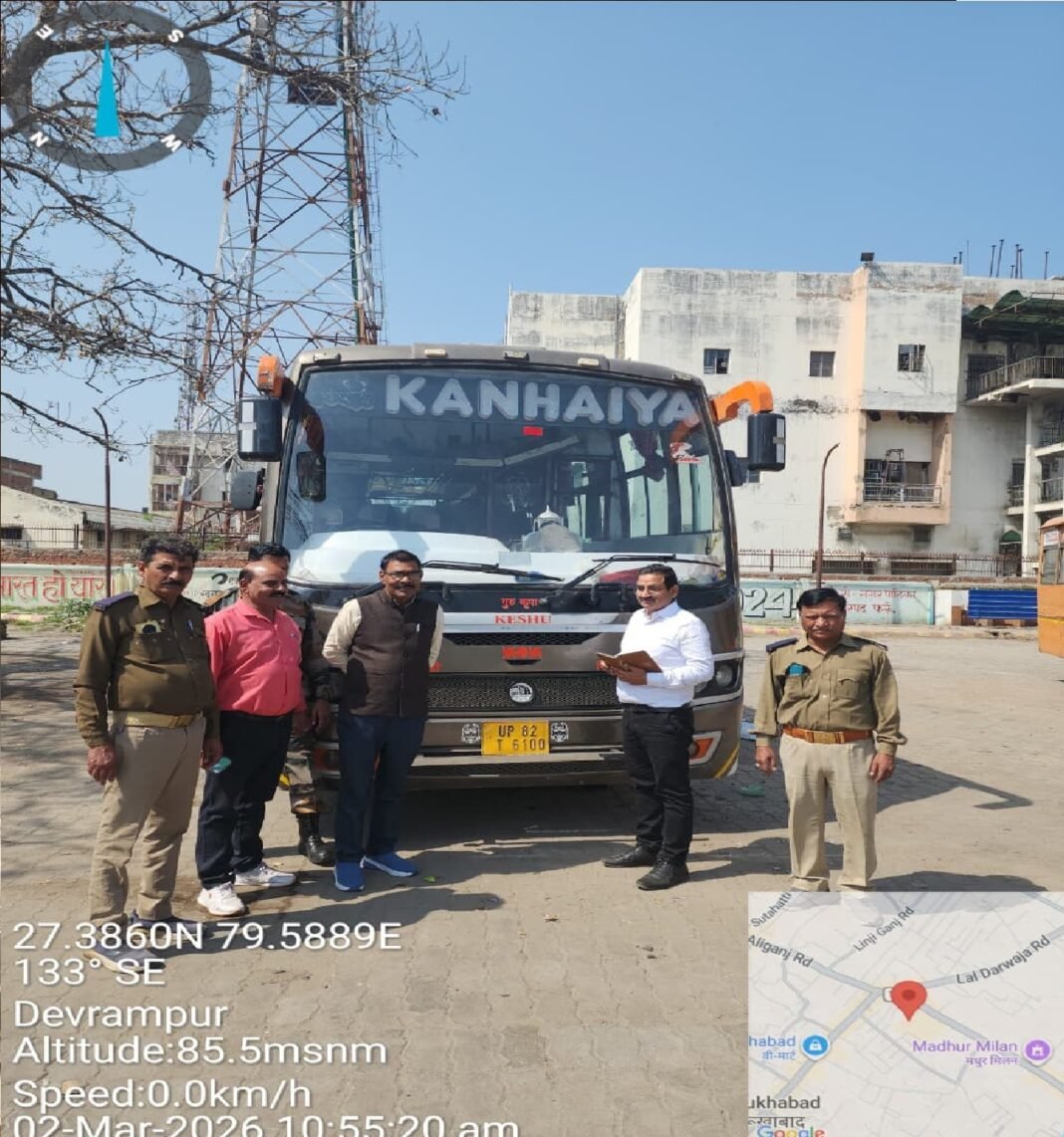 फर्रुखाबाद। होली पर्व के मद्देनज़र यात्रियों को सुरक्षित और व्यवस्थित परिवहन सुविधा उपलब्ध कराने के उद्देश्य से जिला प्रशासन ने अवैध रूप से संचालित डग्गामार बसों के खिलाफ सख्त कार्रवाई की है। जिलाधिकारी फर्रुखाबाद आशुतोष कुमार द्विवेदी के निर्देशन में एआरटीओ प्रवर्तन सुभाष राजपूत तथा एआरएम रोडवेज की संयुक्त टीम ने सघन प्रवर्तन अभियान चलाया।