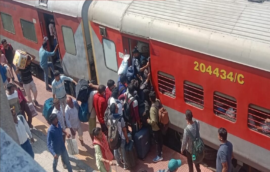 त्योहार के बाद रोजगार पर वापस जाने वालों की उमड़ रही भीड़
