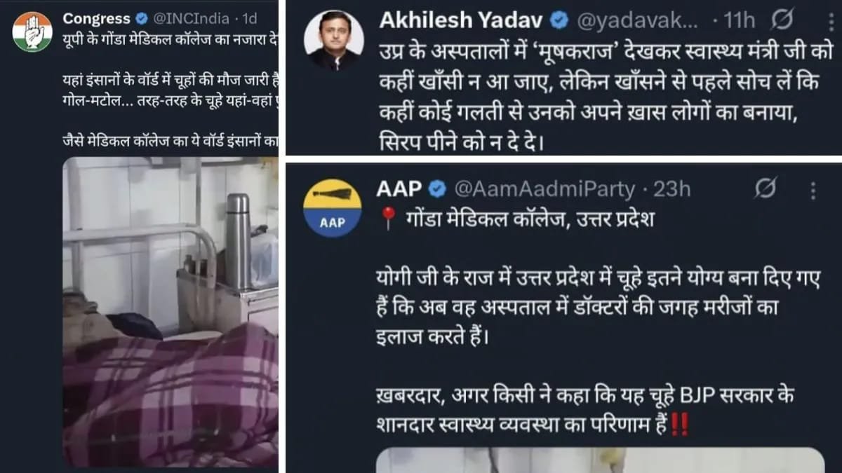 गोंडा| बाबू ईश्वर शरण चिकित्सालय के एक वार्ड में चूहों की मौजूदगी का वीडियो सामने आने के बाद स्वास्थ्य व्यवस्था को लेकर विवाद खड़ा हो गया है। अस्पताल परिसर में चूहों के घूमने का वीडियो सोशल मीडिया पर वायरल होते ही विपक्षी दलों ने इसे मुद्दा बनाते हुए प्रदेश सरकार और स्वास्थ्य विभाग पर तीखे सवाल उठाए हैं। इस मामले में समाजवादी पार्टी के राष्ट्रीय अध्यक्ष और पूर्व मुख्यमंत्री अखिलेश यादव सहित कांग्रेस और आम आदमी पार्टी के नेताओं ने भी वीडियो साझा कर अपनी प्रतिक्रिया दी है।