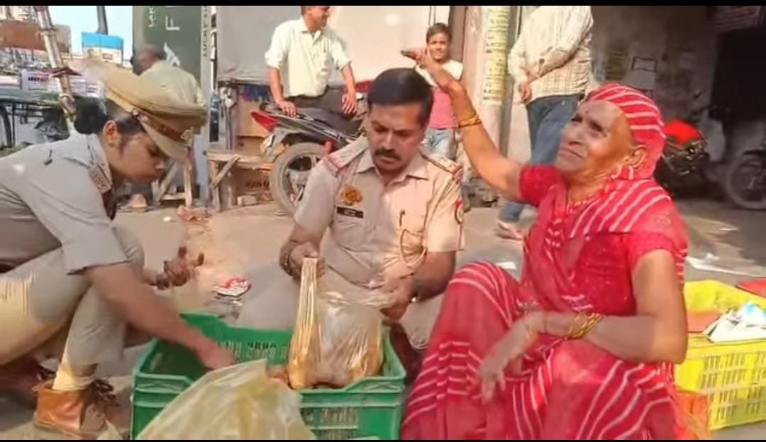 हापुड़| धनतेरस के शुभ अवसर पर जहां लोग खरीदारी में व्यस्त थे, वहीं हापुड़ जिले में एक गरीब बुजुर्ग महिला ‘अम्मा’ अपने मिट्टी के दीए बेचने के लिए सड़क किनारे बैठी थीं। पर पूरे दिन बीत जाने के बाद भी एक भी दीया नहीं बिका। अम्मा मायूस होकर अपना सामान समेटने लगीं, तभी वहां थाना प्रभारी विजय गुप्ता पहुंचे।